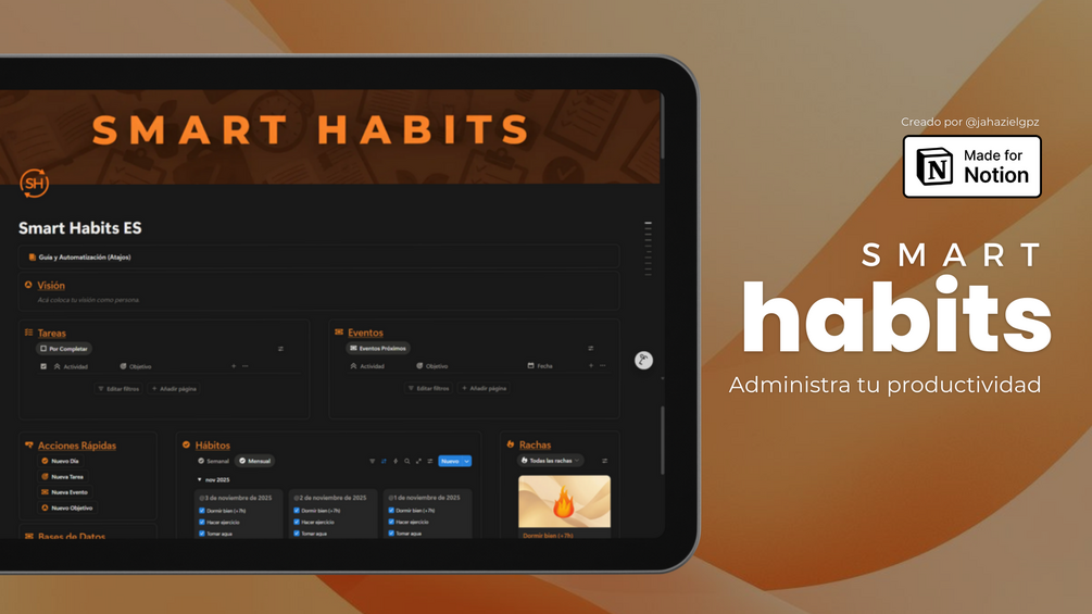 Smart Habits es un sistema organizado en 6 módulos que trabajan juntos para darte una visión completa de tu rutina: